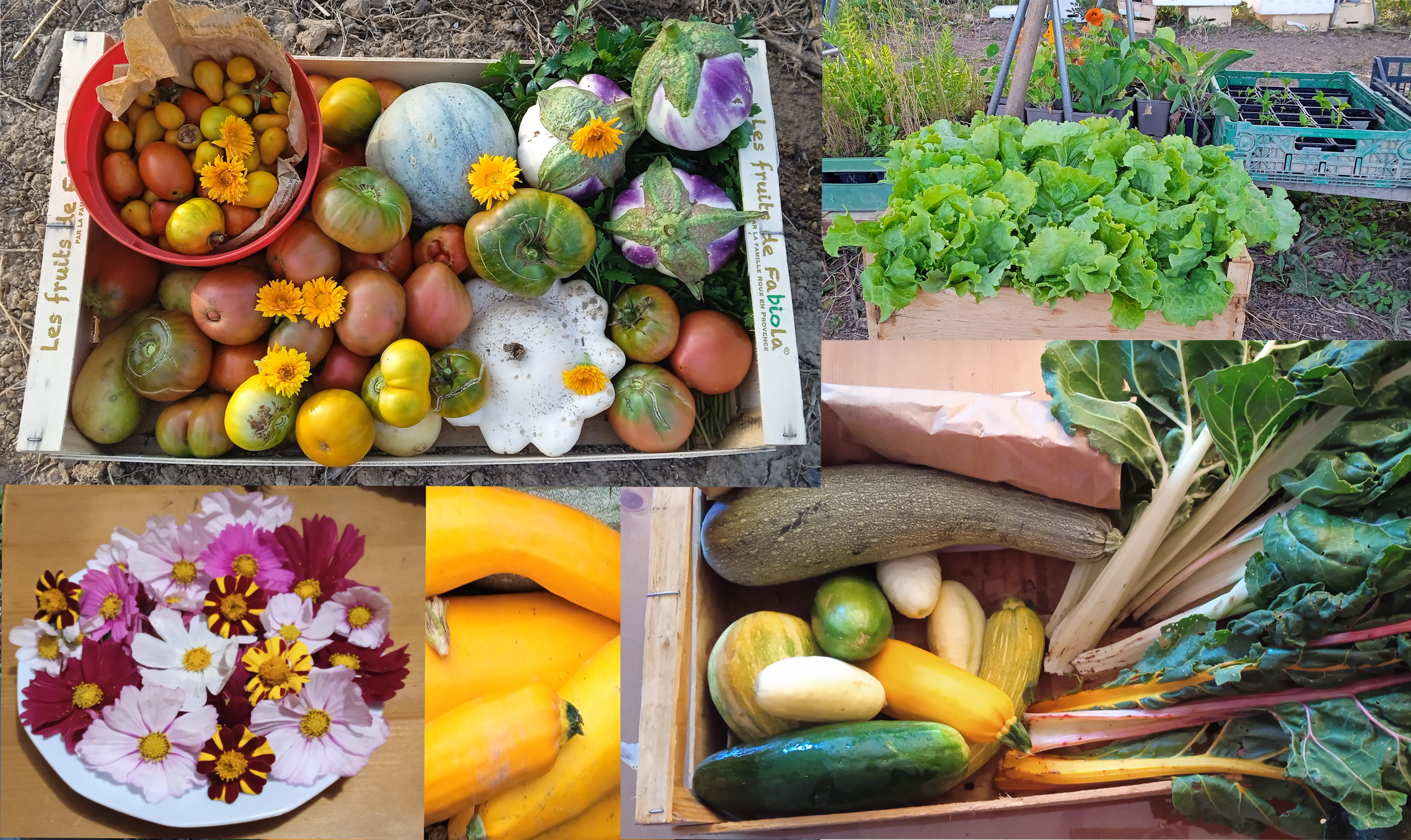 En cette saison, et selon ce que Dame nature aura bien voulu nous faire l'honneur de nous offrir au jardin, vous trouverez dans vos paniers :