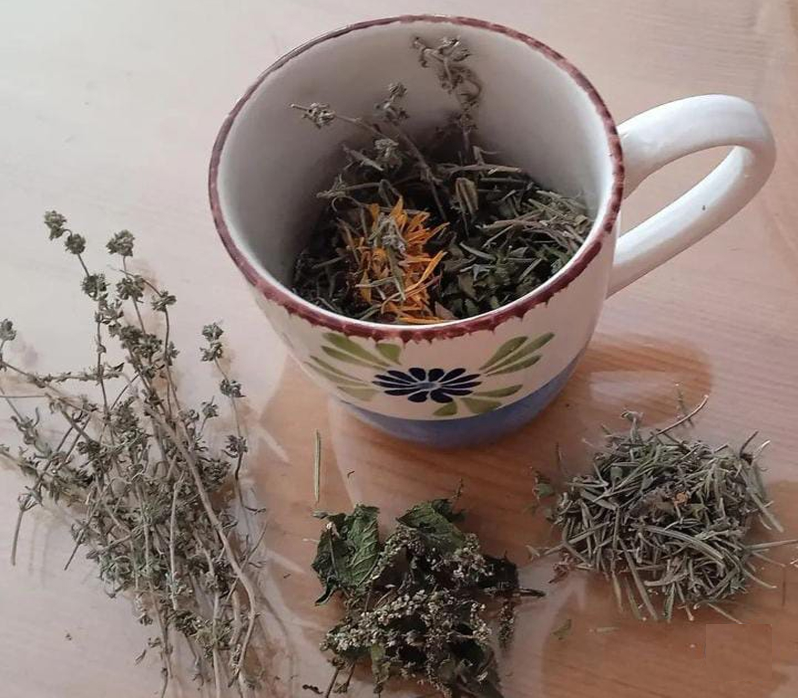 Sa composition : Thym, Romarin, Souci officinal, mauve et Hysope.