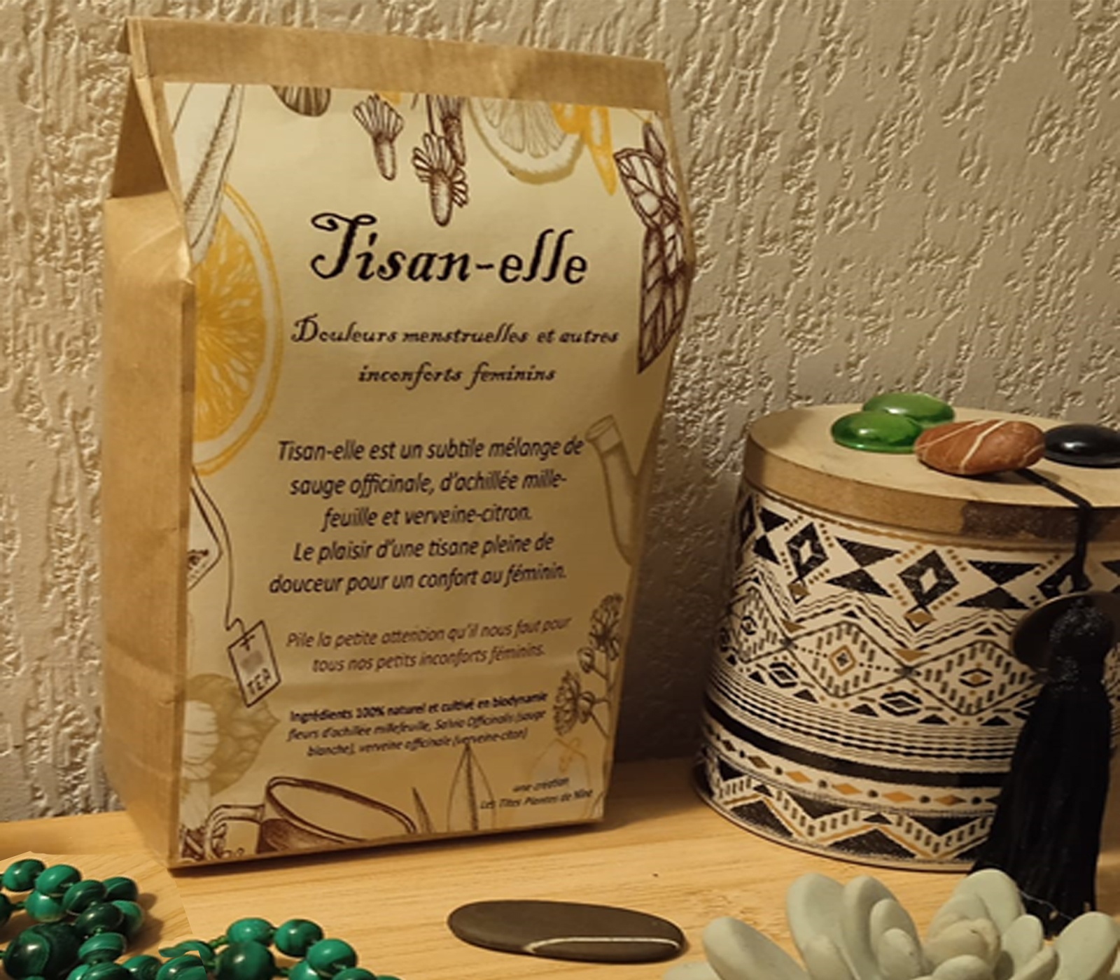 "Tisane 'elle" est un subtil mélange d'achillée millefeuille, de sauge officinal et de verveine citronnée, pour soulager tous les petits et gros inconforts féminins, tout en sublimant nos papilles...